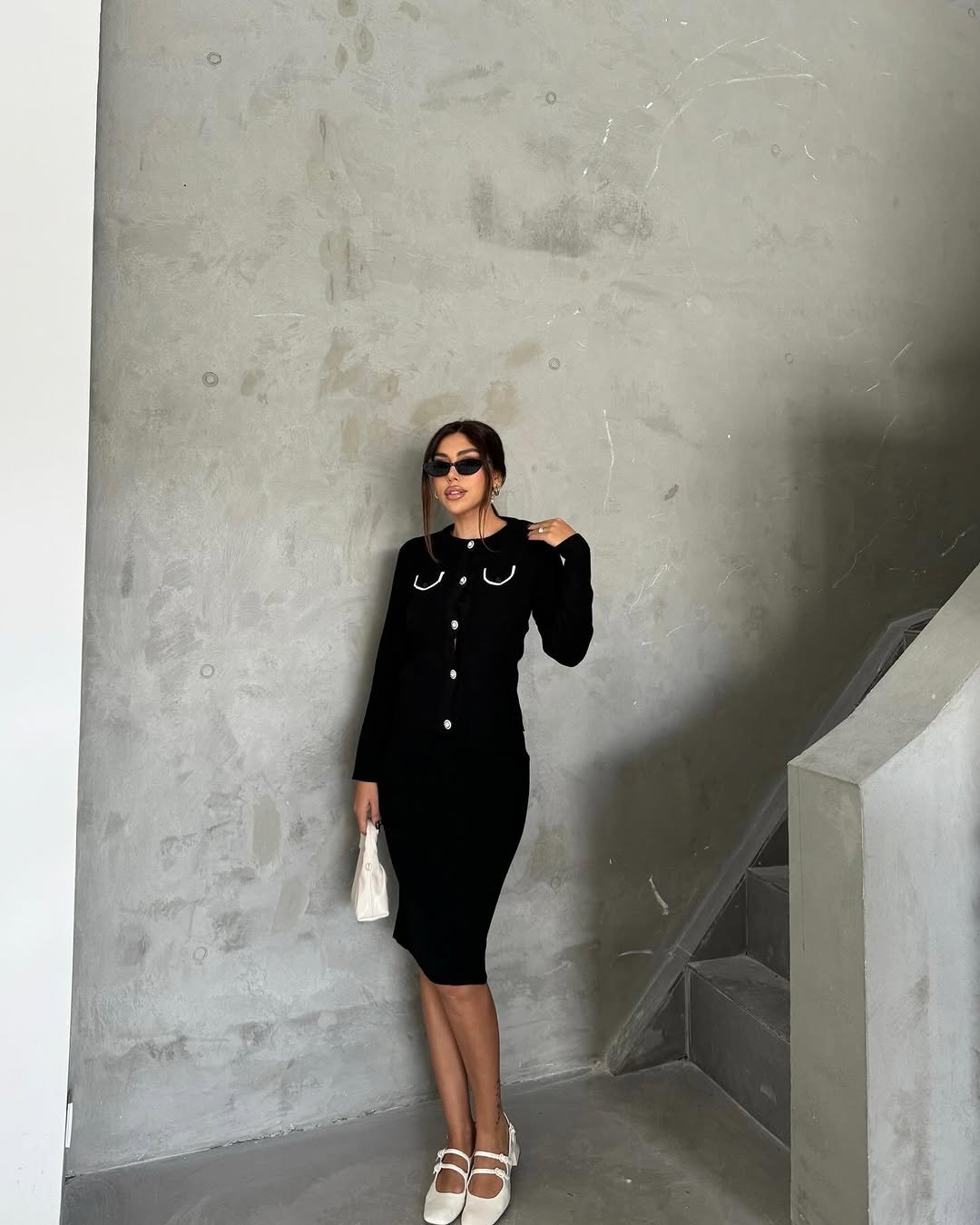 Black Grunge Round Neck Short Dress Covered Cut Long Sleeve Cardigan Fashion Button Vintage Aesthetic Y-Y2K